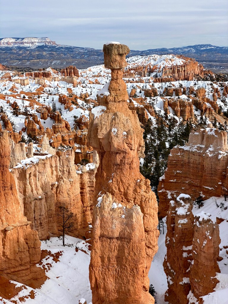 - Snow makes the Hoodoos look even more beautiful. There’s a nice contrast between the Red Rocks, the White Snow and the Blue Sky (on a good weather day).